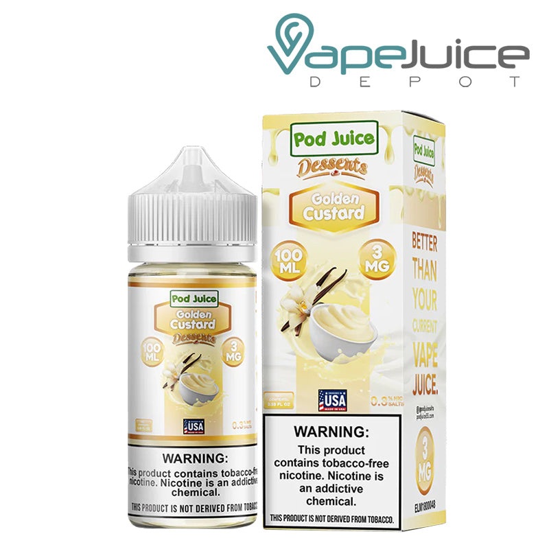 Golden Custard Pod Juice TFN is a harmonious blend of sweet and creamy vanilla custard and rich golden tobacco. It makes for a decadent tobacco-free freebase e-liquidflavor profile throughout the day. Golden Custard TFN eLiquid offers the mellow flavor of vanilla custard combined with smooth tobacco for a sweet and savory blend that keeps you coming back for more. So, it is a clean and easy e-juice from the dessert line of Pod Juice for vapers who appreciate the beauty of simplicity.