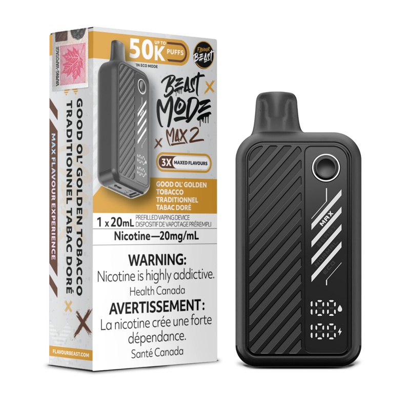 Good Ol Golden Tobacco by Flavour Beast Max 2 50K Puff 20ml – Disposable Vape [ON]