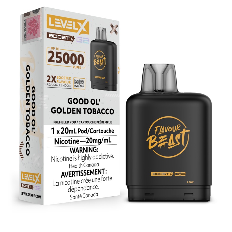 Good Ol’ Golden Tobacco by Level X Flavour Beast Boost – Closed Pod System (25K Puff) [ON]
