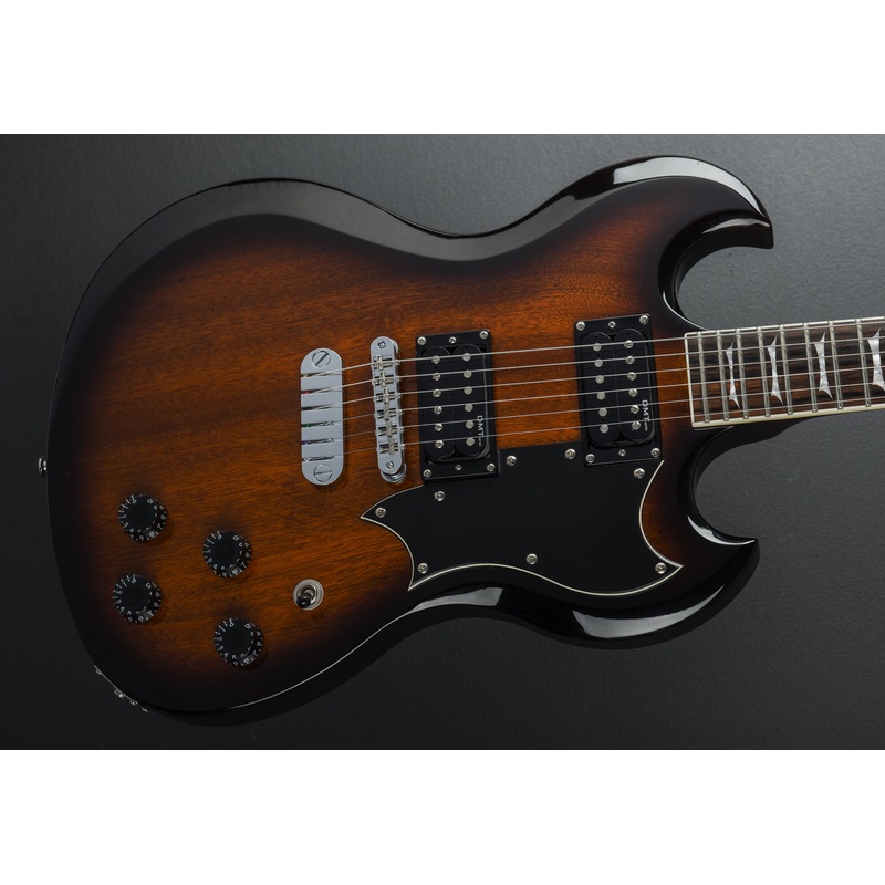 Very Good Condition, Trans Brazilia Burst Finish, Solid Mahogany Body With Double Cutaway Design, Set Mahogany Neck With a 12 Radius Rosewood Fingerboard and 22 Frets, Dot Inlays, 24.75 Scale Length, 1 11/16 Nut Width, Dual Humbucking Pickups With 3-Way Sw