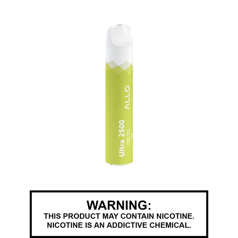 The classic Green Apple Allo Ultra 2500 returns with a revamped battery and vape juice capacity. This disposable vape boasts an impressive 8mL capacity that delivers up to 2500 puffs, with a 1300mAh battery for extended vaping pleasure. Regarded among the