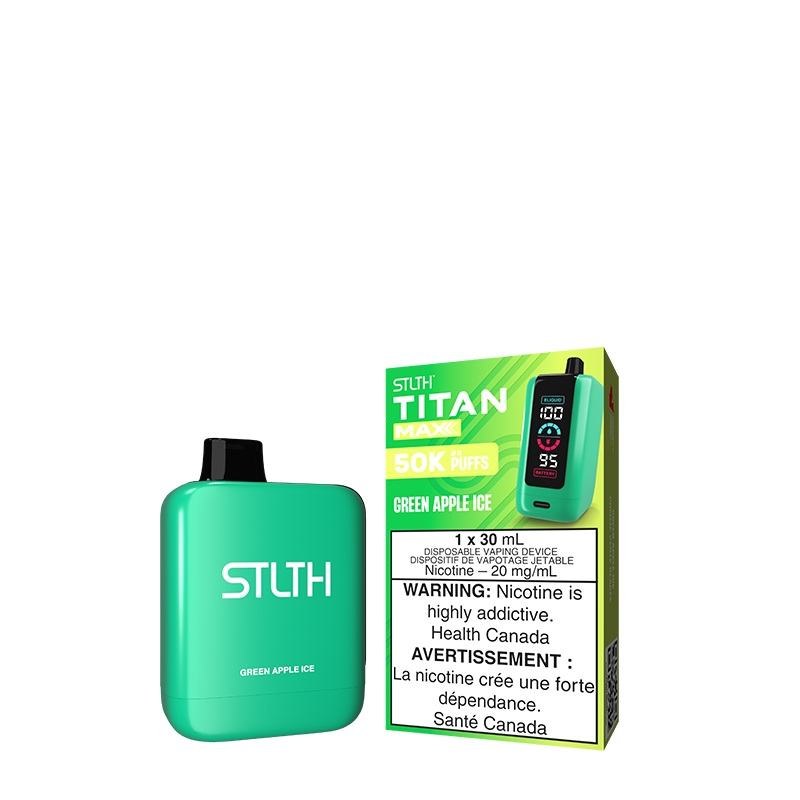GREEN APPLE ICE STLTH TITAN MAX DISPOSABLE (CARTON OF 4 UNITS) Crisp and tart green apple flavour with a frosty chill, delivering the perfect balance of tangy sweetness and refreshing coolness. ______ STLTH TITAN MAX - WITH MEGA SCREEN 1 carton contains 4D