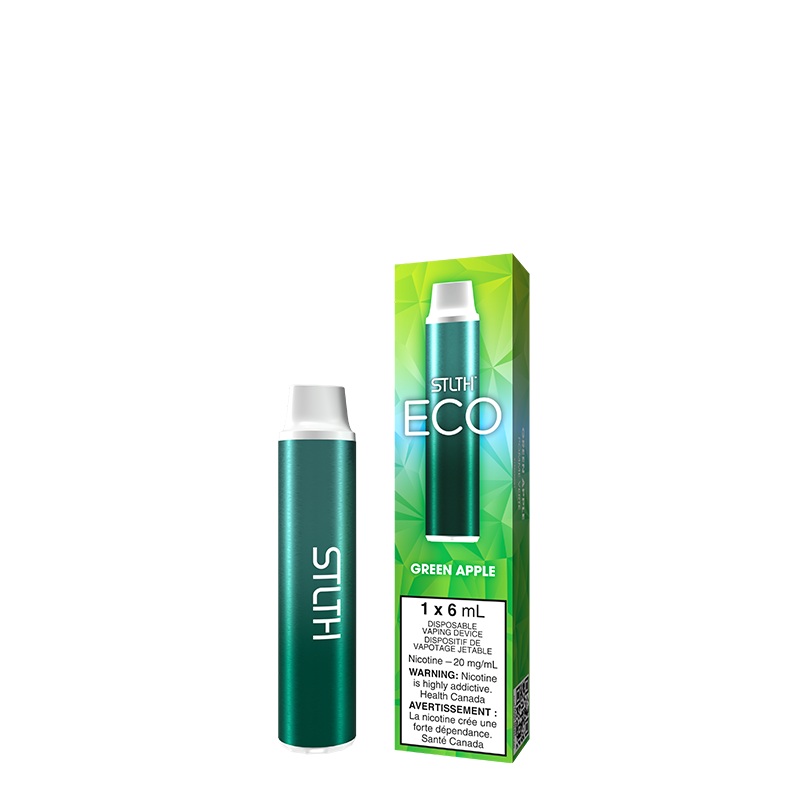 Green Apple STLTH Eco Disposable (Carton of 6 Units)Tart and juicy green apple flavour delivers a crisp, mouthwatering bite with a refreshing finish.______STLTH ECO 1 carton contains 6Disposable Devices 6mL of E-Liquid Compact Size 1000 MAH Battery