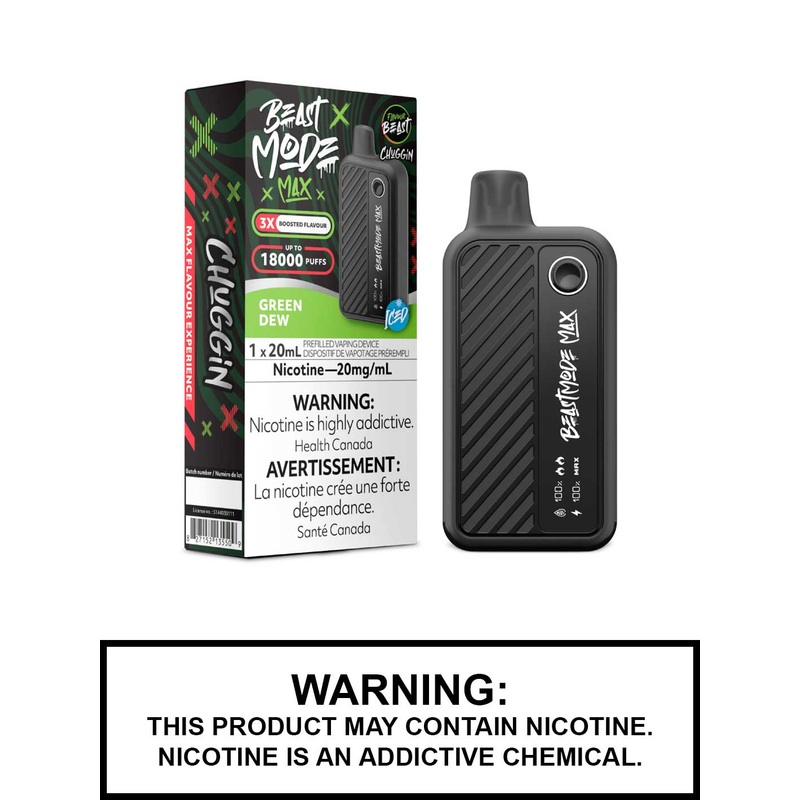 Introducing the Green Dew Iced Flavour Beast Beast Mode Max Chuggin Series disposable vape, the latest addition to the Flavour Beast family! With an impressive 20mL vape juice capacity and up to 18,000 puffs, the Beast Mode Max vape redefines longevity and satisfaction. Choose from three dynamic firing modes Standard, Beast Mode, and Max Mode to customize your vaping experience to your style.
