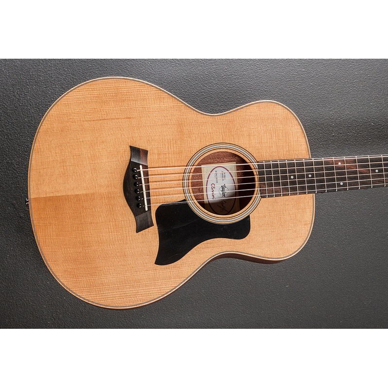 The GS Mini has long been a popular choice for guitarists of all styles and backgrounds thanks to its compact frame, welcoming feel and bold tone. This model is made with layered rosewood back and sides with a solid Sitka spruce top that pumps out rich sound with surprising projection and clarity for a smaller guitar. Its scaled-down size means the GS Mini is easy to take with you to lessons, jam sessions and performances, and its powerful voice stacks up well with vocals or other instruments. This acoustic-only version features a comfortable Taylor neck for easy fretting and ships with a lightweight gig bag.”