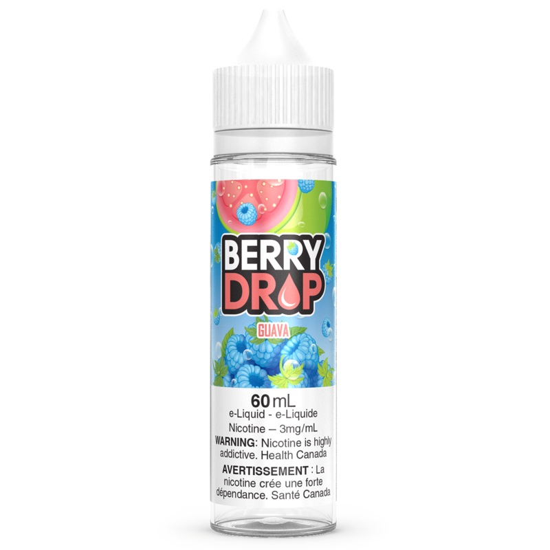 GUAVA - BERRY DROP 60ML Introducing GUAVA BY BERRY DROP e-liquids, a delicious and unique blend of exotic guava and blue raspberry. The guava provides a sweet and slightly tangy taste that is balanced by Berry Drop's signature blue raspberry touch that mak