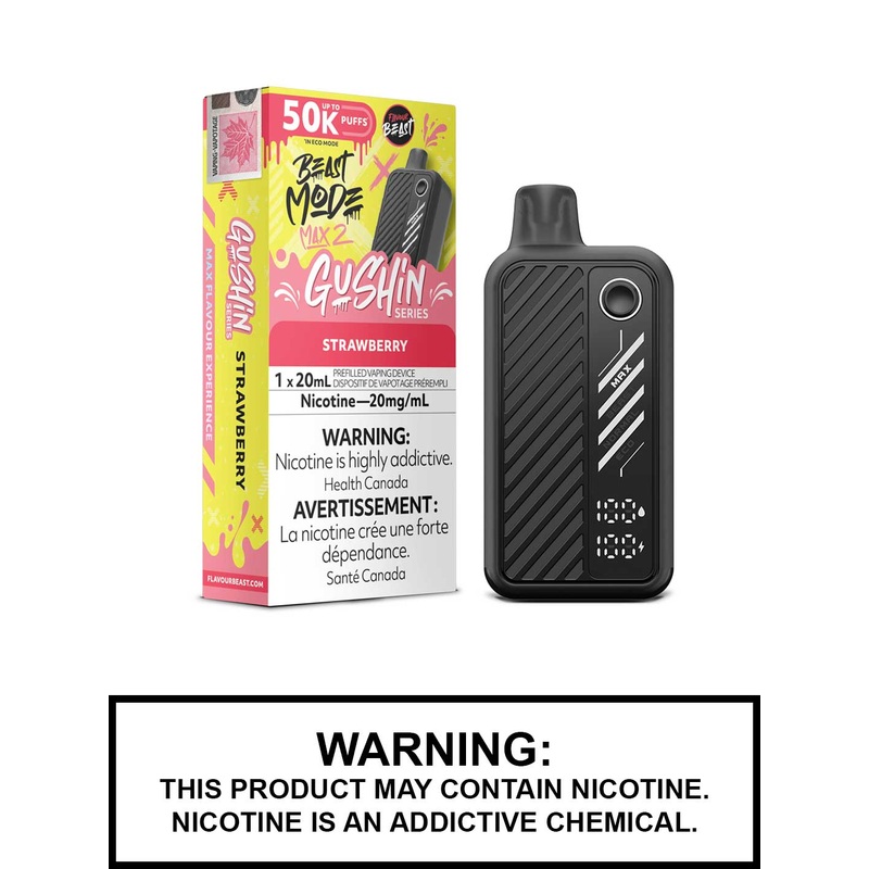 Unleash the power of the Gushin Series Strawberry Flavour Beast Beast Mode Max 2, the latest addition to the Flavour Beast vape family. Designed to deliver an extraordinary vaping experience, this disposable vape boasts 20mL of vape juice and up to 50,000 puffs in eco mode. With four unique firing modes, you decide how to enjoy your favourite Flavour Beast flavours. Whether youre in the mood for maximum puff counts or chasing dense clouds, the Beast Mode Max 2 adapts to every vibe.