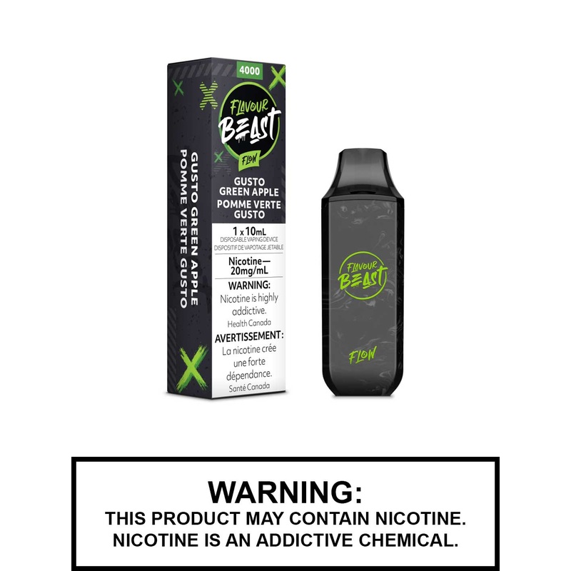 The Gusto Green AppleFlavour Beast Flow disposable vape is a sweet blast of green apple that builds on the apple flavour as you progress from inhale to exhale.Powered by a 600mAh battery with a puff count of up to 4000 puffs, the Flavour Beast disposable vapes allow for a 10mL vape juice capacity. Keeping up with the best disposable vapes, Flavour Beast disposable vape pens are rechargeable through a type-c charging port, with airflow control and mesh coil technology for a more personalized and flavourful vape.
