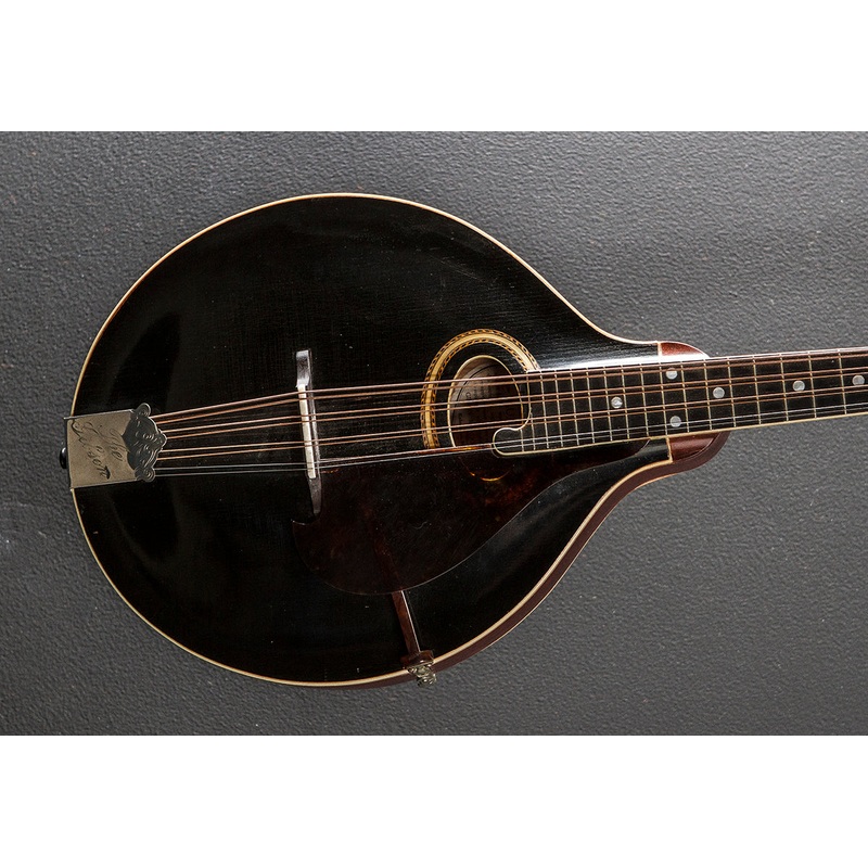 Black Top, A body style, Spruce top with the oval soundhole, Maple/Birch back and sides, V shaped Mahogany neck, Bound flat Ebony fingerboard with the original small frets, 15.75" scale length, 1 5/16th" nut width, Original bridge/tailpiece and engraved Ha