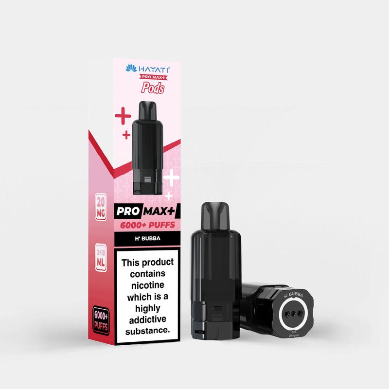 Hayati Pro Max+ Pods Find Your Flavour Fix! Got a Hayati Pro Max+ device? Perfect. Explore 30 bold flavours and enjoy smooth, flavour-packed clouds with every puff. H' Bubba Classic bubblegum flavour with juicy layers and a sweet nostalgic kick.