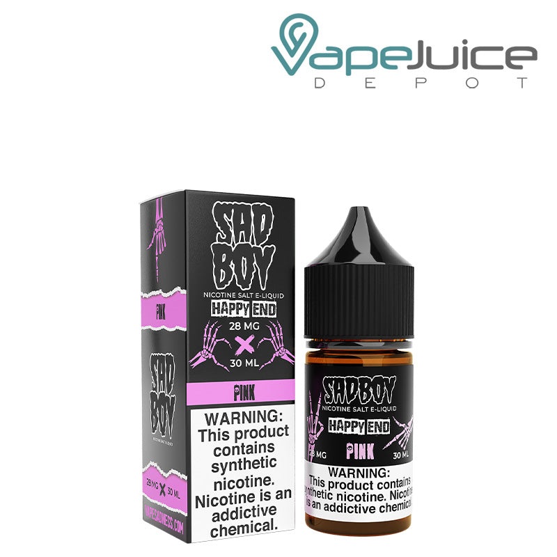 Vaping is best enjoyed with friends, and this mouthwateringly sweet Happy End Pink Salt SadBoy nicotine salt is no exception! Featuring a luscious blend of fresh cotton candy and ripe strawberries, SadBoy Happy End Pink synthetic nicotine eJuice will leave you hungry for more juice – try it if you dare! This salt line curbs cravings with sweet, tangy strawberry and a hint of cotton candy on the exhale.