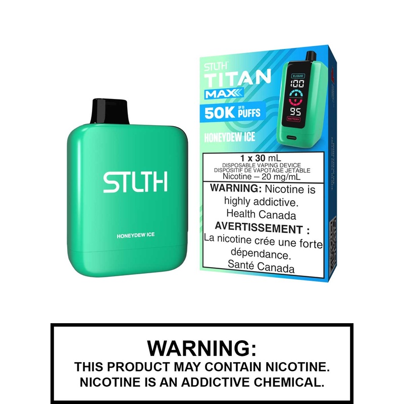 Introducing the Honeydew Ice STLTH Titan Max disposable vape -the most powerful and long-lasting STLTH vape yet. Designed to elevate your vaping experience, the Titan Max comes packed with an impressive 30mL of premium vape juice, capable of delivering up