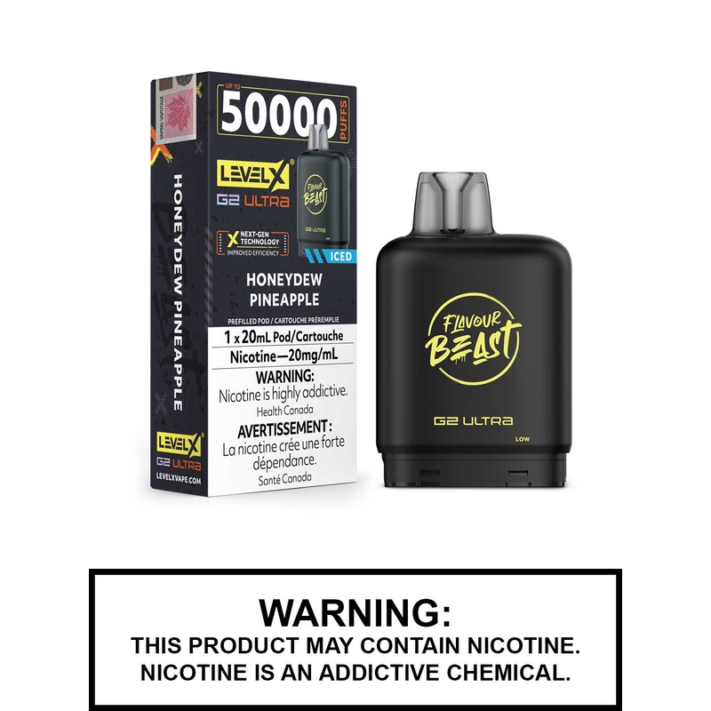 Push the limits of hybrid performance with the Honeydew Pineapple Iced Flavour Beast Level X Ultra Pods - a next-level upgrade in the Level X vape family. Engineered for extended use, each Ultra pod delivers up to 50,000 puffs with a 20mL vape juice capaci
