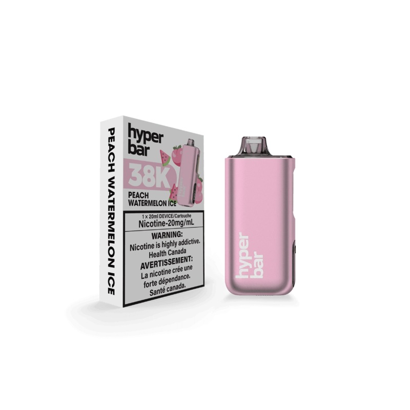 Peach Watermelon Ice Hyperbar BE38000 Disposable Vape by Hyperbar Enjoy the refreshing blend of sweet peach and juicy watermelon with a cool menthol finish in the Peach Watermelon Ice Hyperbar BE38000 Disposable Vape by Hyperbar. This vape combines the swe