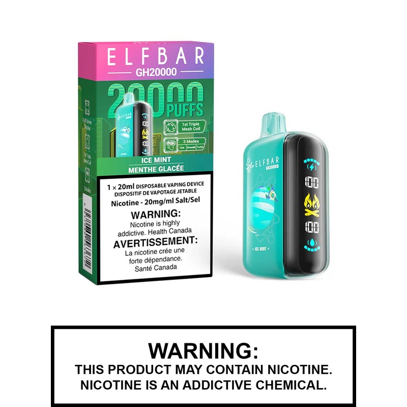 Introducing the Ice Mint Elf Bar GH20000 disposable vape, the latest addition to the renowned Elf Bar family. Featuring 20mL of vape juice and an 850mAh rechargeable battery, the Elf Bar 20K sets a new standard in disposable vaping. This new Elf Bar vape boasts an enhanced triple mesh coil system, offering three distinct power modes to suit your preferences.