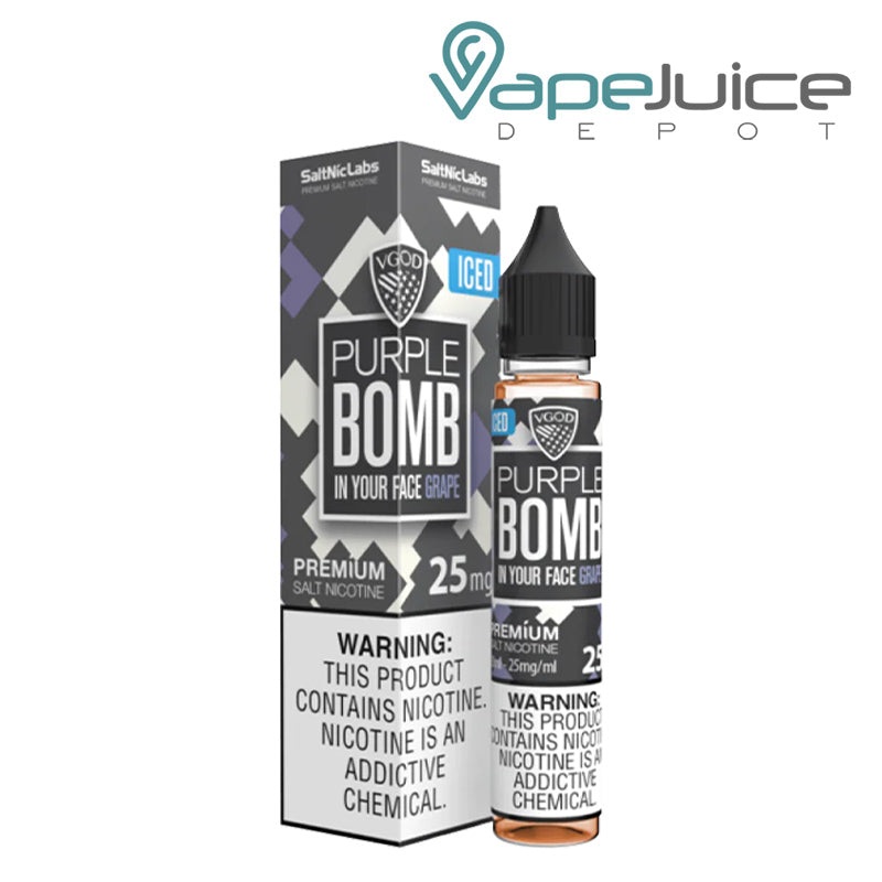 Shaped from sweet purple grapes and fresh menthol, the well-balanced texture of VGOD salt Purple Bomb Iced nicotine salt eLiquid will not only quench your nicotine thirst but also make it possible to experience a flavorful throat hits along with some puffy clouds for ultimate satisfaction.