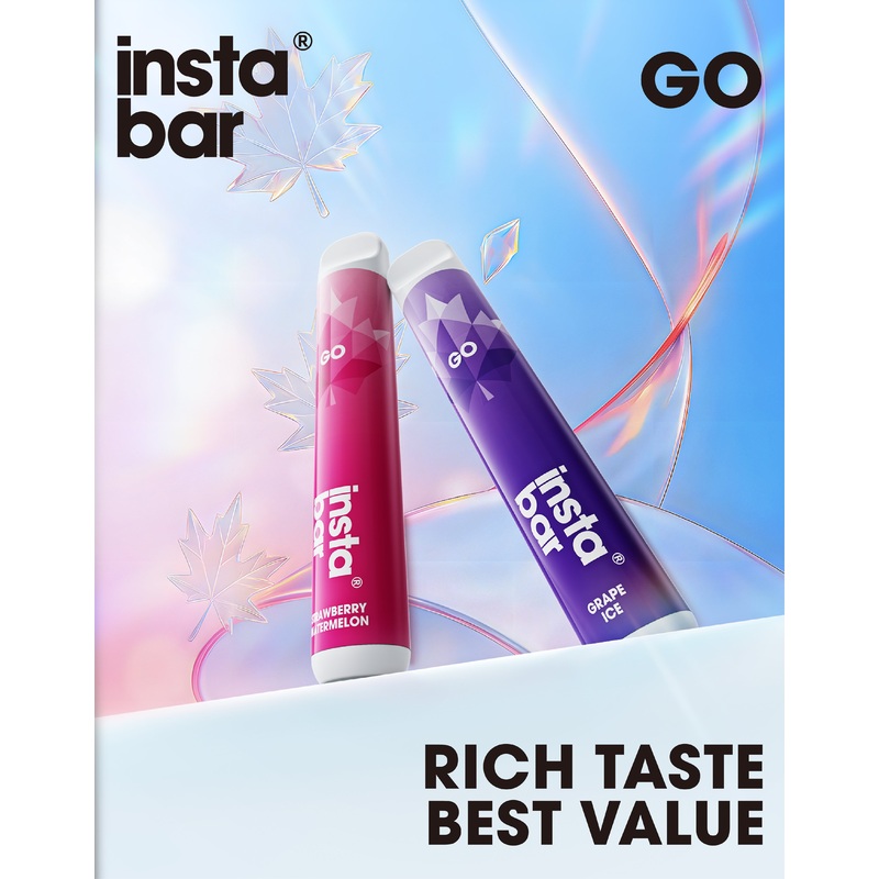 Insta Bar GO|Watermelon Ice|Strawberry Watermelon|Strawberry Peach|Strawberry Lemon|Sour C|Pink Lemon|Mango Peach|Lemon Mint|Hype|Grape Ice|Clear|Caly Orange|Raspberry Watermelon|Pineapple Coconut Classic|Mint|Mango Ice|Dragon Fruit Strawberry Ice|Blueber