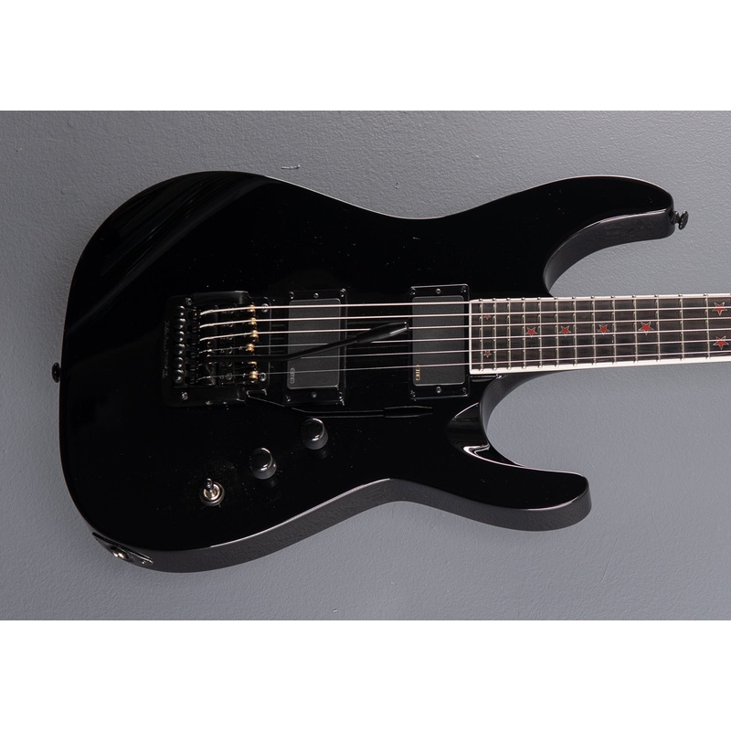 Excellent Condition, Black, Alder body wings, Bound 13.78" radius Macassar Ebony fingerboard with star inlays and extra jumbo frets on an Extra Thin U shaped 3 Piece Maple neck, 25.5" scale length, 1.65" nut width, EMG 81 bridge and EMG 85 neck pickups wit