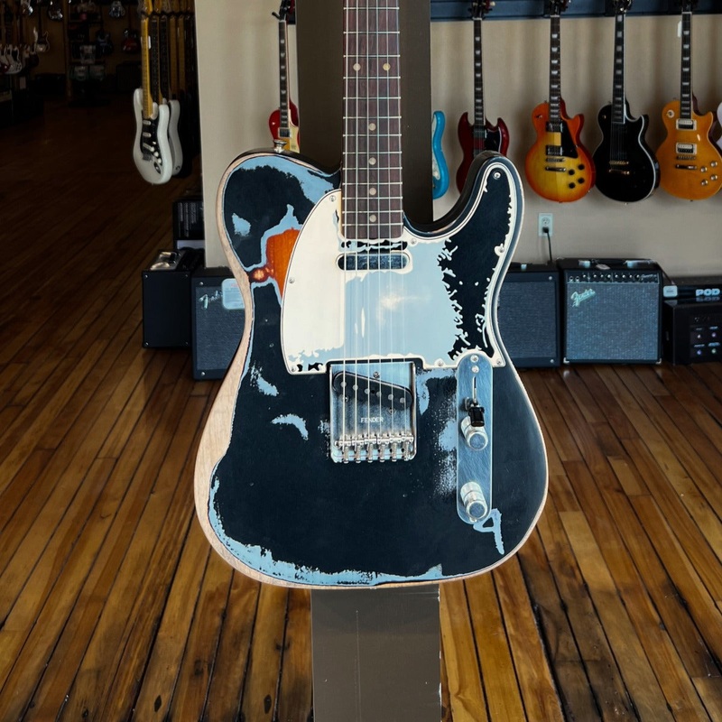 Black, Made in Mexico, Alder body,Road Worn nitrocellulose lacquer finish, 60’s C shaped Maple neck with a 7.25″ radius slab Rosewood fingerboard and vintage size frets, 25.5″ scale length,1.650″nut width,Custom Joe Strummer single coil Tele bridge and neck pickups, 3-way switching with the master volume and tone controls, String thru body Tele bridge with the six barrel steel saddles, Vintage style tuners, 8.0 pounds, With hardshell case