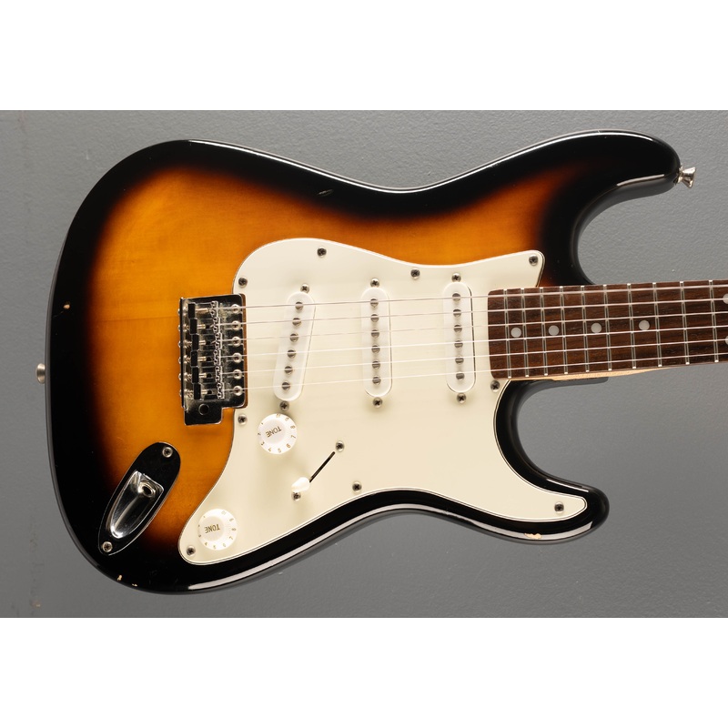 Very Good Condition, Tobacco Sunburst, Hardwood body, Rosewood fingerboard with dot inlays on a Maple neck, 24" scale length, 1.475" nut width, the neck measures .79" at the 1st and .88" at the 12th frets, Factory single coil strat style pickups, Tremolo b
