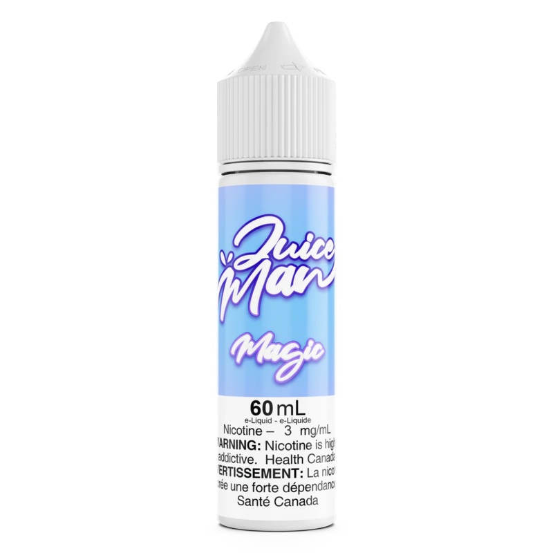 Juice Man Magic E-Liquid A combination of whipped creams with a fruity base of raspberry and mango to keep your mouth watering. Carnival meets the tropics, meets creams in an experience you won't soon forget. This eliquid features blue raspberry and mango