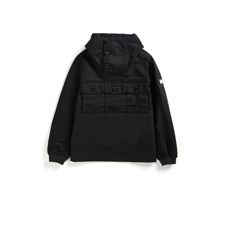 3 pocket over-top made with mid-weight 100% Cotton featuring a subtle diagonal weave. Part of our Kidswear collection Kidswear sizes range from: 4-14 3 piece hood with placket and WO branded metal buttons 3 chest bellows pockets with WO branded buttons Sid