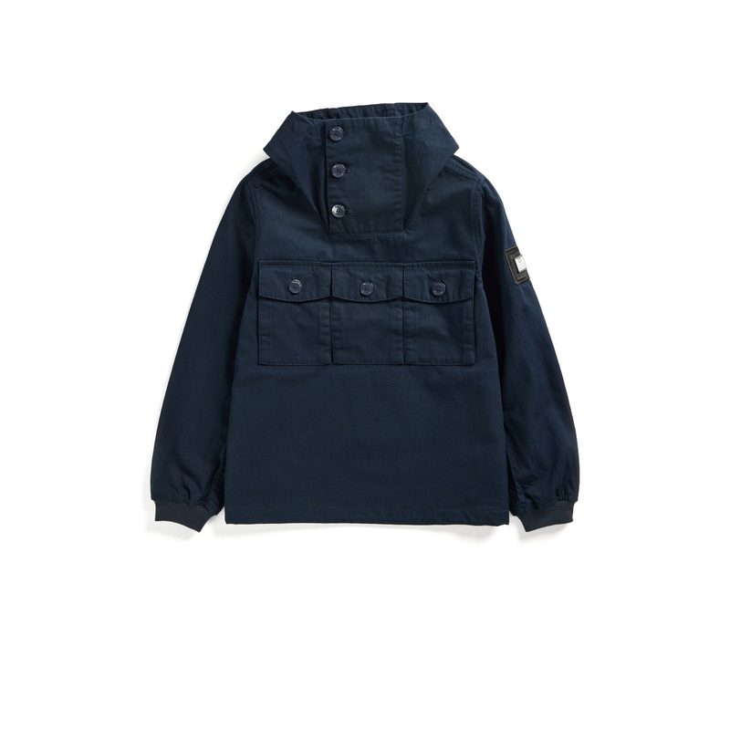 3 pocket over-top made with mid-weight 100% Cotton featuring a subtle diagonal weave. Part of our Kidswear collection Kidswear sizes range from: 4-14 3 piece hood with placket and WO branded metal buttons 3 chest bellows pockets with WO branded buttons Sid