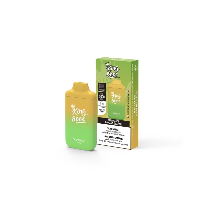 King 5000 disposable Vape Rechargeable using type C 10 ML of Salt Nicotine Nicotine 0MG Flavour Profile - Banana Ice