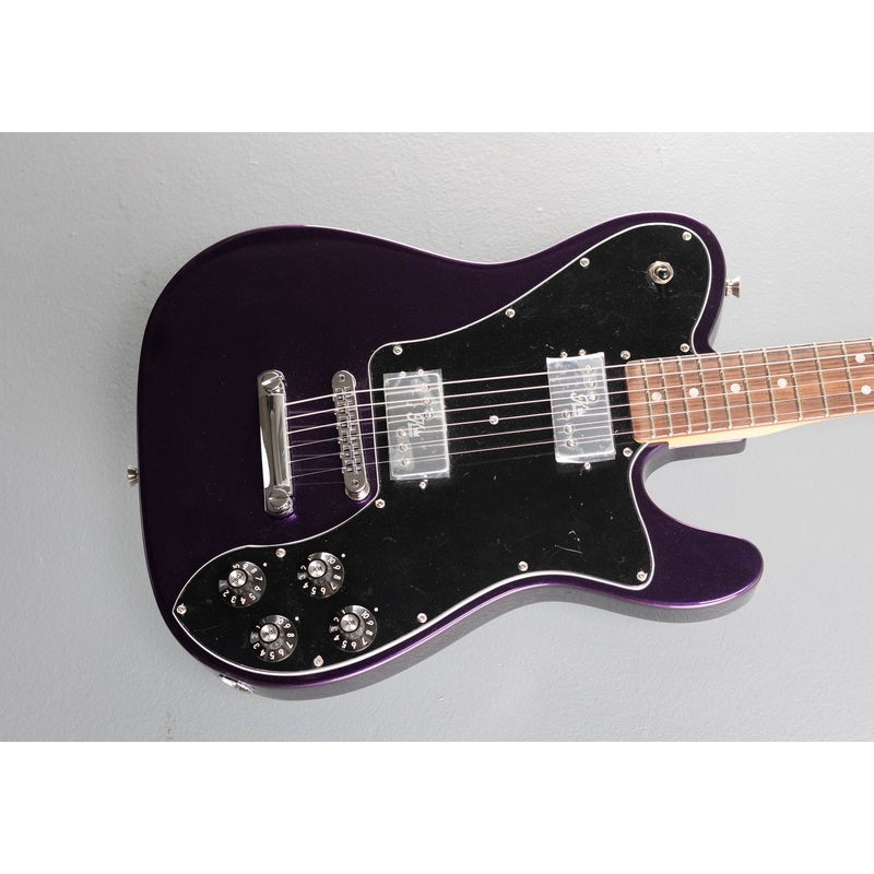 The Kingfish Telecaster Deluxe features two custom humbucking pickups voiced for growling, overdriven blues-rock and an adjusto-matic bridge for perfect intonation. The V-shaped roasted maple neck has a classic feel while the 12 radius slab rosewood fingerboard delivers chunky tones and big bends. The mesmerizing Mississippi Night finish has a shimmering purple glow that recalls a dark winter sky in Clarksdale. Other special features include Kingfishs signature on the headstock, a custom neck plate and a K crown logo on the pickup covers.