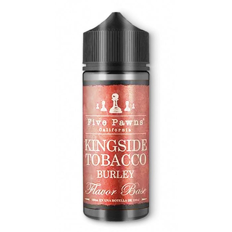 Kingside Tobacco Burley - 100ml Shortfill By Five Pawns Kingside Tobacco Burley by Five Pawns is based around a Burley tobacco leaf - which is a very low-sugar leaf with light and dry flavour notes. this excellent Tobacco E-liquid from the masters at Five