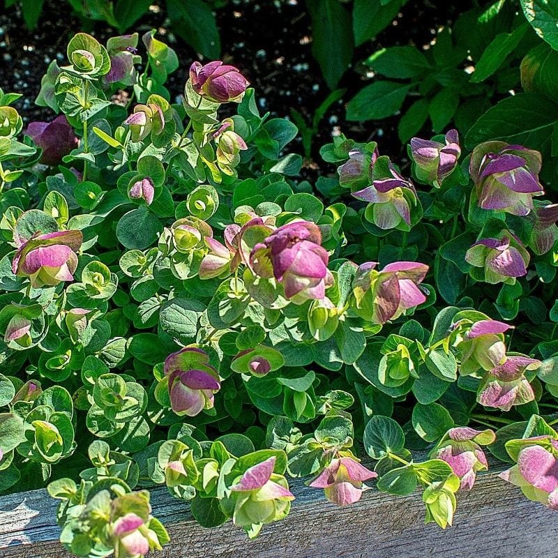 Intriguing nonculinary oregano that has densely textured mounds of drooping hop-like flowers in soft tones of sage green, dusty pink, and purple, changing with different light exposure. Kirigami is decorative in patio containers, hanging baskets, and window boxes, where its eye-catching appearance can be consumed all season.PVP
