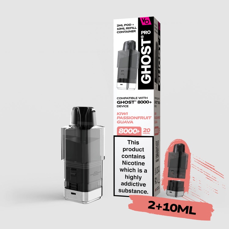 Ghost Pro 8K Kiwi Passionfruit Guava Pod blends the tangy taste of kiwi, the sweetness of passionfruit, and the tropical flavour of guava, vibrant and exotic. Each pack includes a 2ml pod + 10ml refill built to keep the taste going strong.
