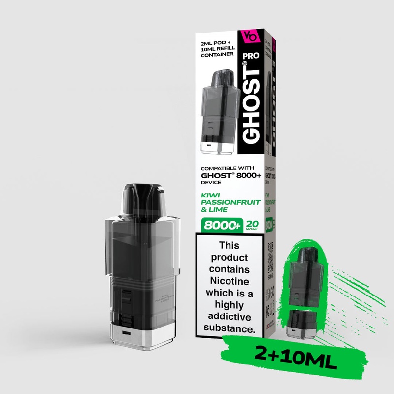 Ghost Pro 8K Kiwi Passionfruit & Lime Pod blends the tangy taste of kiwi, the sweetness of passionfruit, and the flavour of lime, vibrant and exotic. Each pack includes a 2ml pod + 10ml refill built to keep the taste going strong.