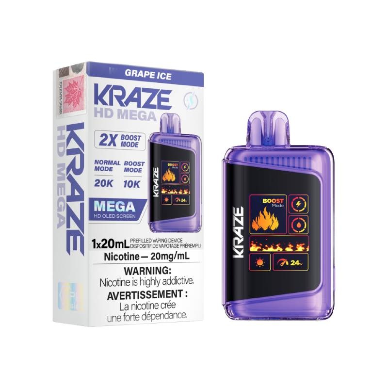 Grape Ice by Kraze HD Mega Disposable Vape – 20000 Puffs, 20ML