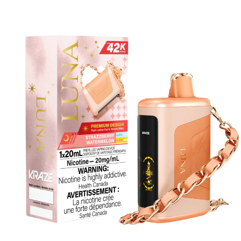 Kraze Luna – Strazzberry Watermelon – A balanced fusion of strawberries and watermelons, offering a fresh and delicate flavour profile that captivates the senses.