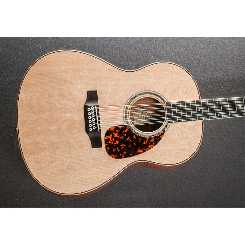 Natural, Gloss finish, Sitka Spruce top, X bracing, Abalone Rosette, Mahogany back and sides, Maple binding with the multi-stripe top inlay, 12 radius Ebony fingerboard with the Dot inlays on a Mahogany neck, 25.5 scale length, 1 7/8th nut width, Cast/seal