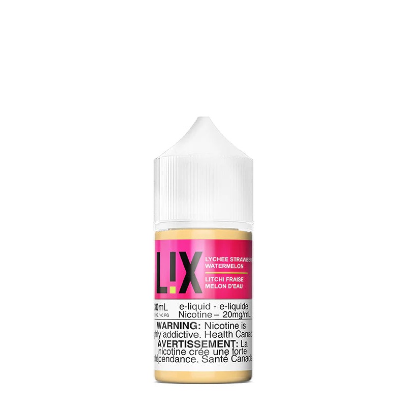 ONTARIO L!X - LYCHEE STRAWBERRY WATERMELON An aromatic blend of lychee, sweet strawberry, and juicy watermelon. Nic Salt 40% VG | 60% PG 30ml Chubby Gorilla Bottles Made in Canada FINAL SALE