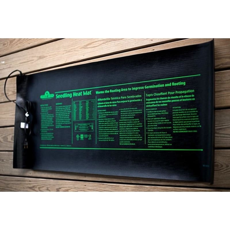 Provide the perfect germinating conditions for your indoor seed starting experience. The bottom heat will give an ideal warm soil environment for quicker germination and healthier plants off to a great start. Essential for many flowers, peppers, tomatoes, and eggplants, the heat mat provides uniform heat for warming the root area up to 20% more than existing air temperature. Thick, waterproof mat has a multi-layer construction that is heat bonded, not glued, to stay sealed for durability and a 6 power cord. Instructions and tips are printed directly on the mat. Made in the USA!