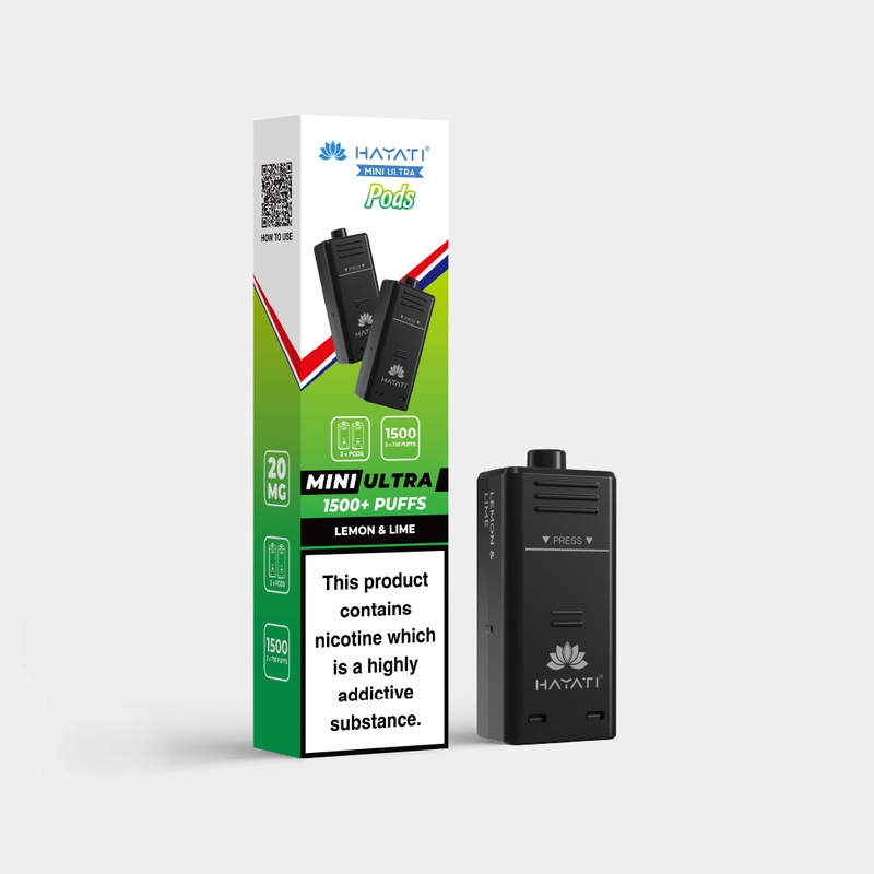 Hayati Mini Ultra Pods Lemon & Lime Got your Hayati Mini Ultra device? Great. Now unlock 20 bold flavours and experience full-bodied clouds in every puff. Lemon & Lime: A crisp and zesty citrus vape with a tangy lemon-lime duo.