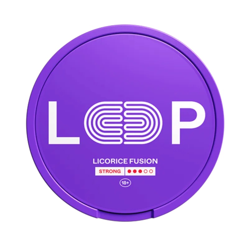 LOOP Licorice Fusion Strong blends the salty depth of classic Scandinavian licorice with the juicy sweetness of raspberry, creating a bold fusion thats both rich and refreshing. Each slim, all-white pouch is designed for comfort, discretion, and a clean, s