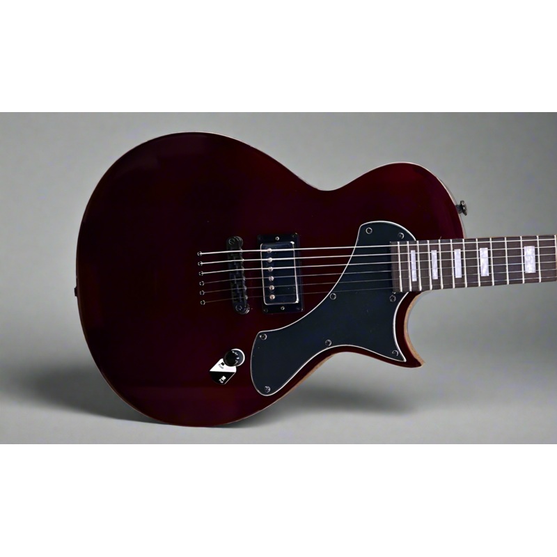 See Through Black Cherry, Mahogany body, Set-in thin U shaped U three piece Mahogany neck, Bound 13.78″ radius roasted Jatobafingerboard with the pearloid block inlays and extra jumbo frets, 24.75″ scale length, 1 11/16th” nut width, ESP LH-150B bridge pickup with the push/pull coil tap master volume control, String thru body design with a tune-o-matic bridge, LTD cast/sealed tuners, 6.6 pounds, Case not included