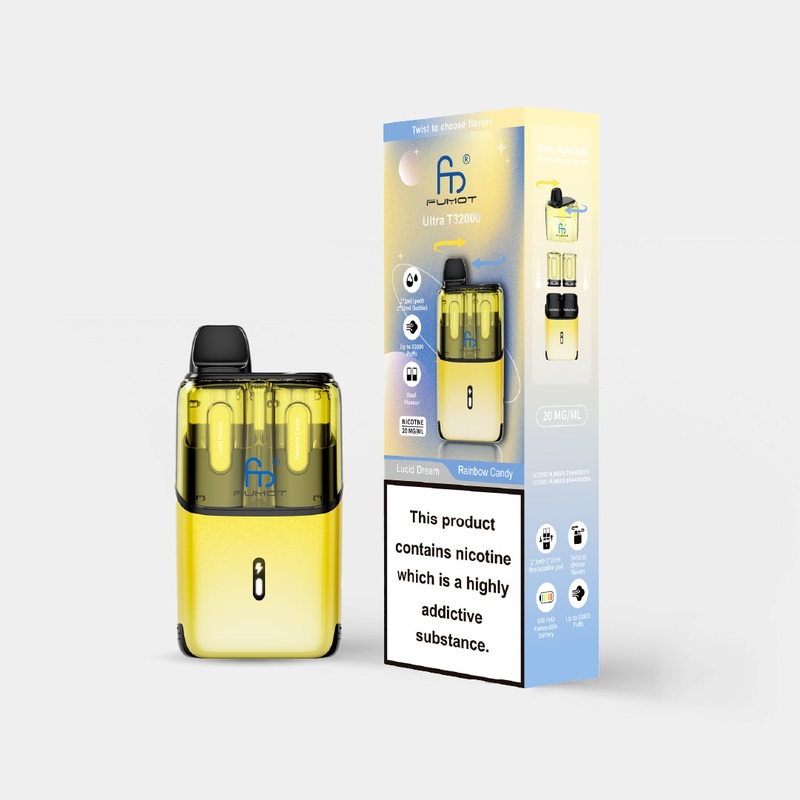 Fumot Ultra T32000 Lucid Dream | Rainbow Candy Get over 32,000 puffs with bold, smooth flavour in every hit. Rechargeable and available in 16 tasty flavours to keep you going. Lucid Dream Dreamy blend of tropical fruits.Rainbow Candy Sweet, nostalgic candy