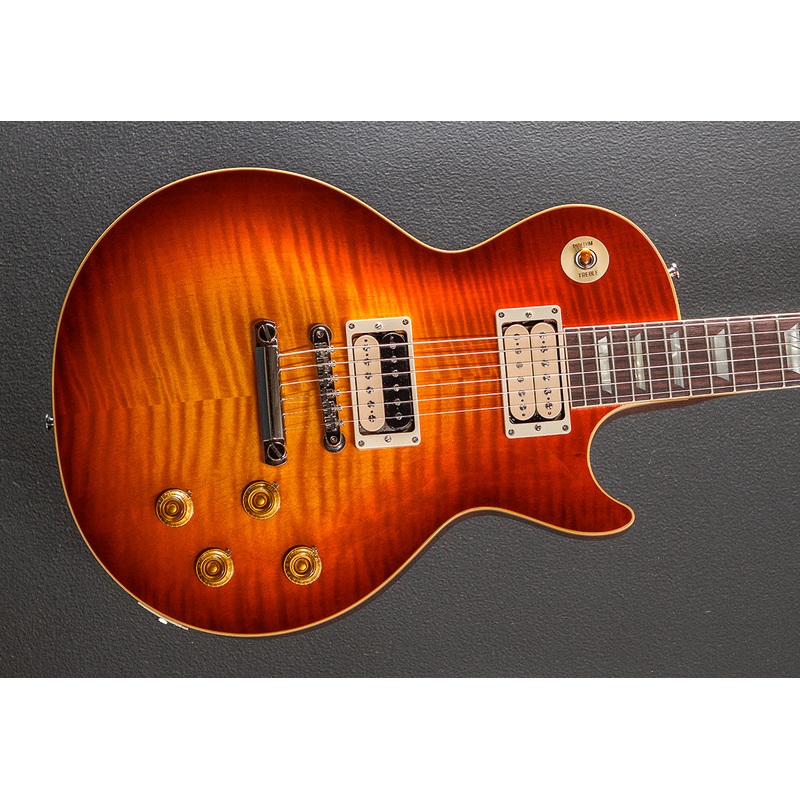 “Gibson Custom Shop’s 1959 Les Paul Standard Reissue is not just a tribute to the priceless original models — it’s a clone of them. From laser-scanned dimensions to chemically-recreated plastics to color-matched shades of sunburst, every element has been rendered in unbelievable detail. It represents the culmination of decades of work by Custom Shop’s expert team — a tireless quest to bring accuracy and authenticity to the hands of fans. Its the definition of cool, and it’s the best representation of the 1959 Les Paul Standard since the Gibson Custom Shop began making Historic Reissues over twenty-five years ago.”