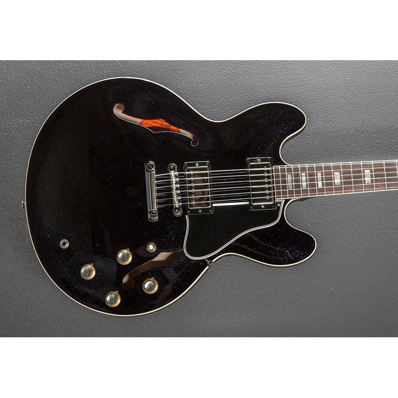 Brunswick Blue Sparkle, Gloss nitrocellulose lacquer finish, Semi-hollow 3-ply Maple/Poplar/Maple body with a solid Maple centerblock, Long tenon and hide glue neck joint, Slim taper 60’s C shaped Mahogany neck, Bound 12 radius Indian Rosewood fingerboard with the small Block cellulose nitrate inlays and authentic medium jumbo frets, 24.75 scale length, 1 11/16th nut width, Gibson unpotted Custombucker Alnico III bridge and neck pickups, 3-way toggle switching with the volume and tone controls for each pickup, No wire ABR-1 bridge with the nylon saddles and a lightweight aluminum stop tailpiece, Kluson single line/double ring tuners, With the certificate and Gibson hardshell case, Excellent