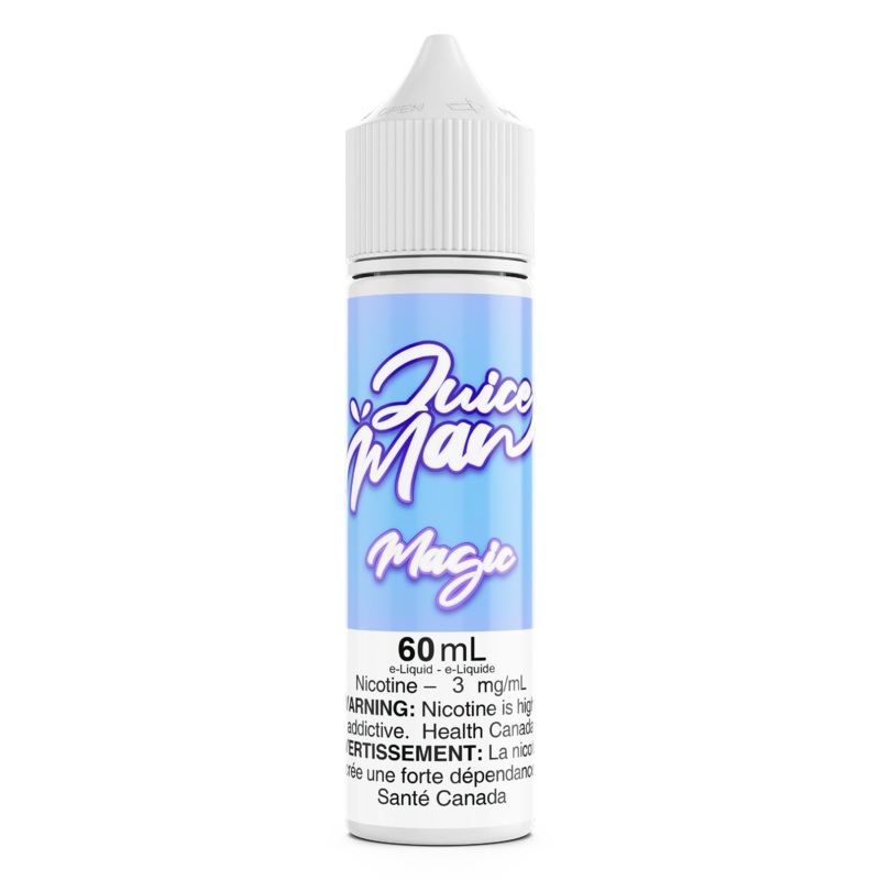 MAGIC - JUICE MAN E-LIQUID 100ML A delicious and tangy sour blue raspberry and mango. Due to new government regulations in Canada we are unable to describe certain flavour profiles online. We recommend searching for this eliquid on a website outside of Can