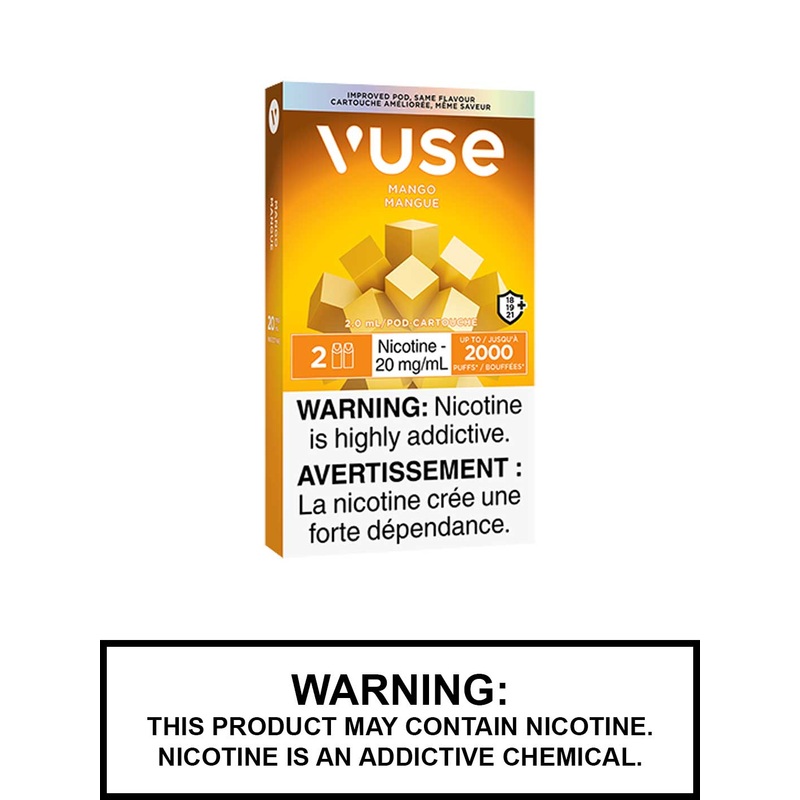 Introducing the new and improved Mango Vuse pods, designed to take your Vuse vape experience to the next level. These enhanced Vuse pods feature viewable vape juice levels, so youll never be caught off guard when its time to replace. The upgraded ergonomic mouthpiece ensures a more comfortable draw, while the ceramic heating technology delivers better flavour and a smoother experience.