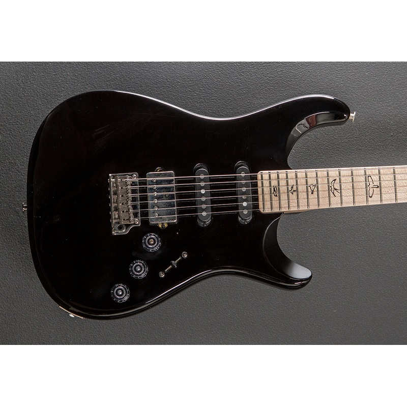 Black Iris, High gloss nitro body finish, Swamp Ash body, Fiore shaped Maple neck with a 10 radius Maple fingerboard and the Bird inlays, 25.5 scale length, 1 21/32nd" nut width, Fiore H bridge and Fiore S middle/neck pickups, 5-way blade switching with th