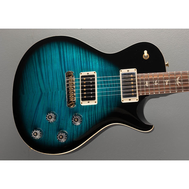 Carroll Blue Smokeburst, High gloss nitro finish, Violin carved Flame Maple 10 top, Mahogany body, Pattern Thin carved Mahogany neck, 10″ radius Rosewood fingerboard with the Bird inlays, 25 scale length, 1 11/16th nut width, Tremonti bridge and neck pickups, 3-way toggle switching with the volume and tone controls for each pickup, PRS adjustable stop tailpiece and PRS Phase III locking tuners, 8.1 pounds, With hardshell case