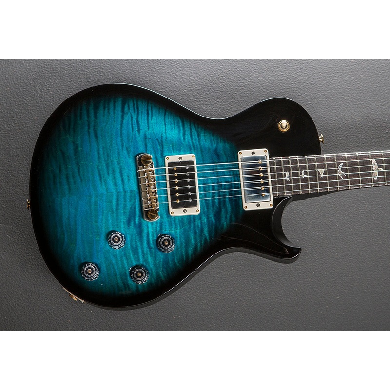 Carroll Blue Wraparound Smokeburst, High gloss nitro finish, Violin carved Flame Maple 10 top, Mahogany body, Pattern Thin carved Mahogany neck, 10″ radius Rosewood fingerboard with the Bird inlays, 25 scale length, 1 11/16th nut width, Tremonti bridge and neck pickups, 3-way toggle switching with the volume and tone controls for each pickup, PRS adjustable stop tailpiece and PRS Phase III locking tuners, 9.4 pounds, With hardshell case