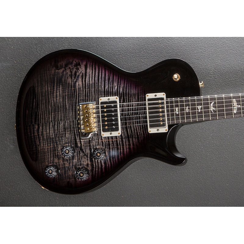 Charcoal Purple Smokeburst, High gloss nitro finish, Violin carved Flame Maple 10 top, Mahogany body, Pattern Thin carved Mahogany neck, 10″ radius Rosewood fingerboard with the Bird inlays, 25 scale length, 1 11/16th nut width, Tremonti bridge and neck pickups, 3-way toggle switching with the volume and tone controls for each pickup, PRS Gen III tremolo with the trem-up route,PRS Phase III locking tuners, 9.0 pounds, With hardshell case